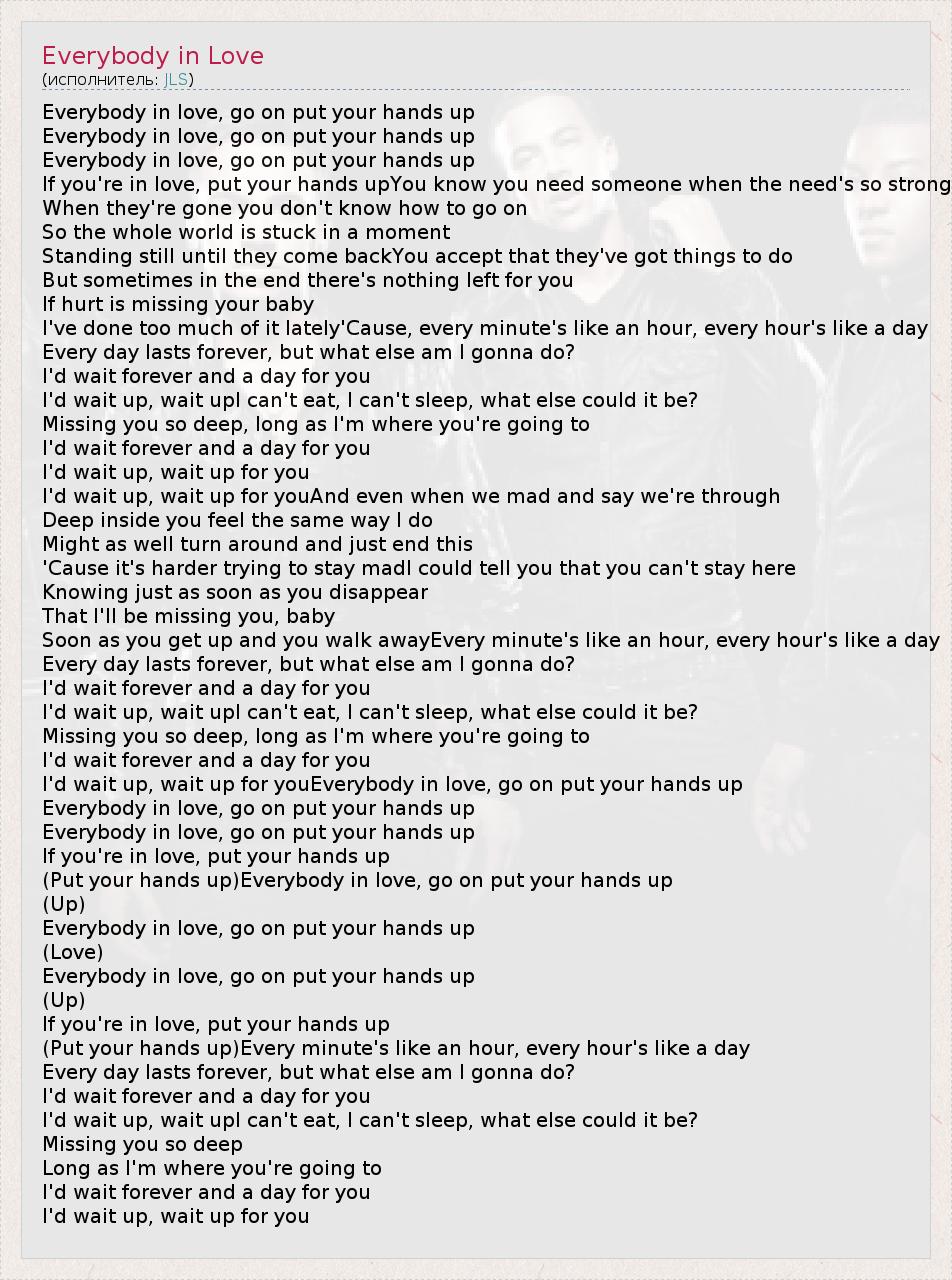 I'd wait up, wait up for youEverybody in love, go on put your hands up