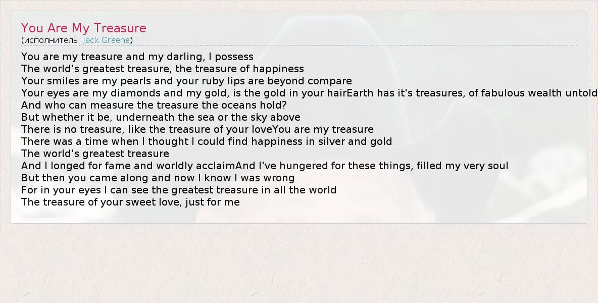 А как ты думаешь, о чем песня "You Are My Treasure" ?