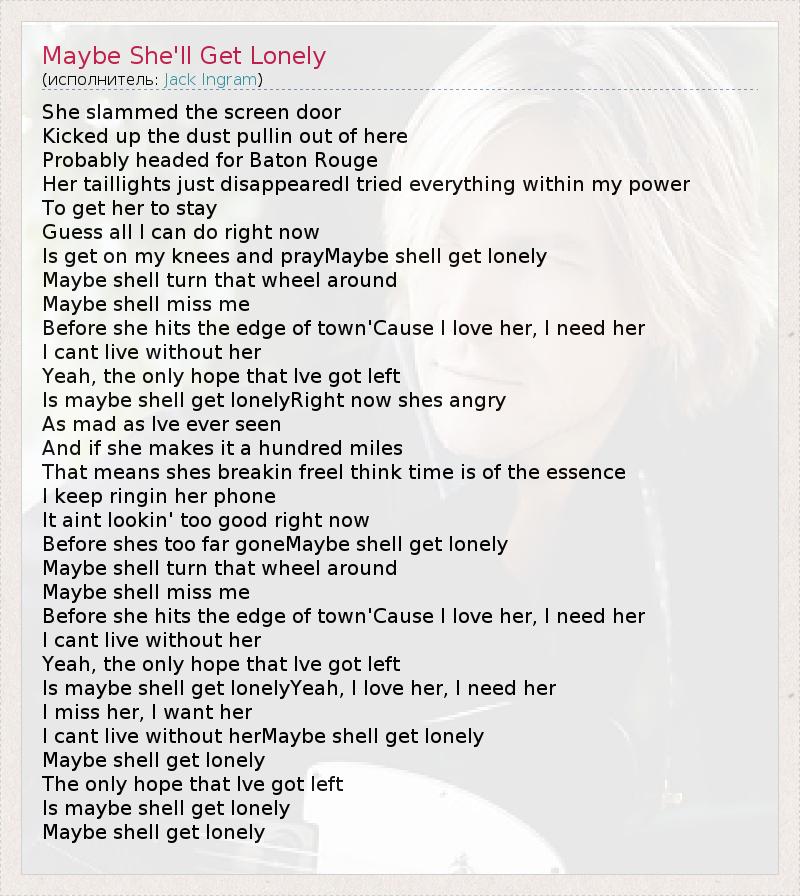 А как ты думаешь, о чем песня "Maybe She'll Get Lonely" ?