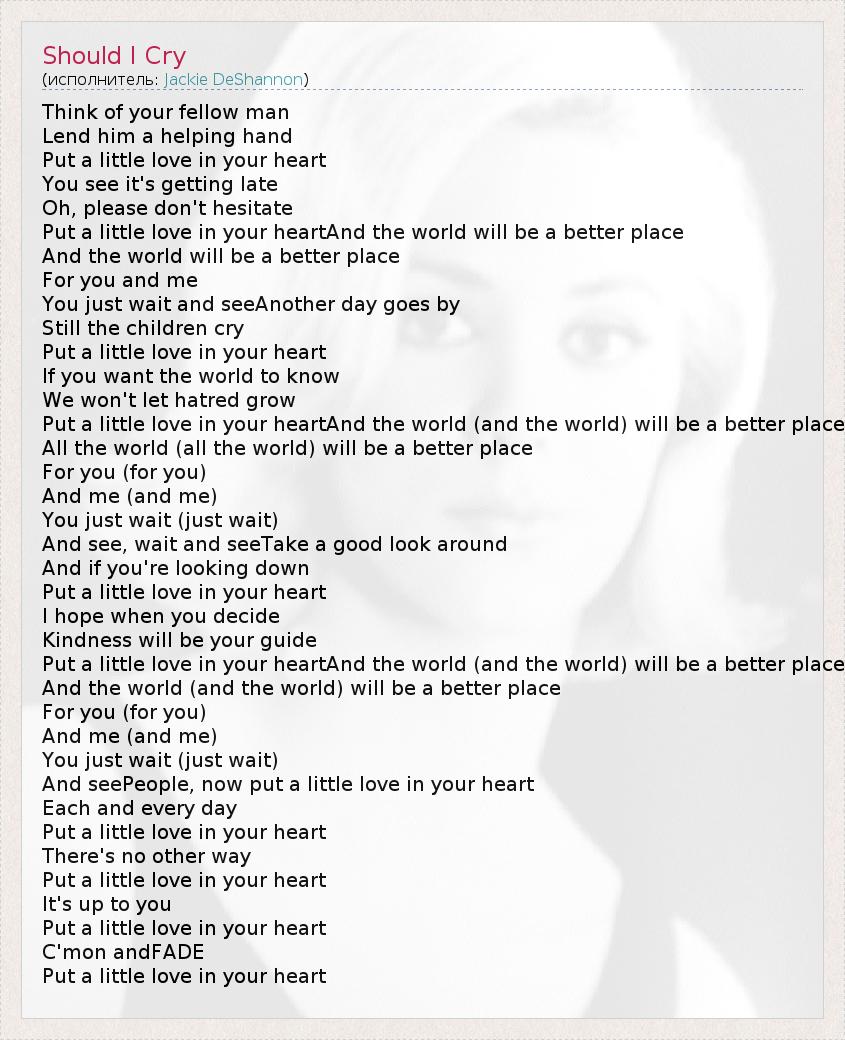 А как ты думаешь, о чем песня "Should I Cry" ?