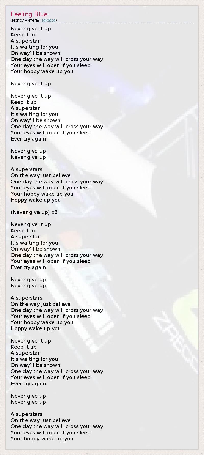 А как ты думаешь, о чем песня "Feeling Blue" ?