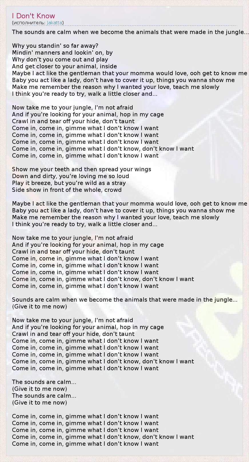 А как ты думаешь, о чем песня "I Don't Know" ?