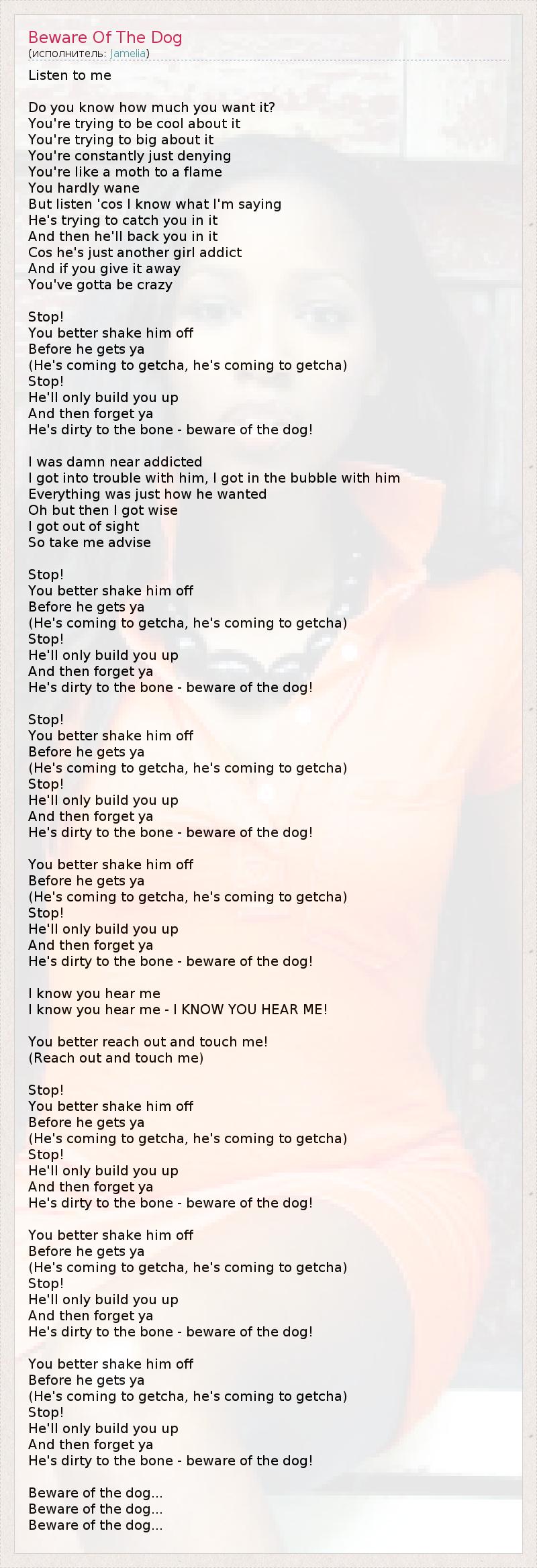 А как ты думаешь, о чем песня "Beware Of The Dog" ?