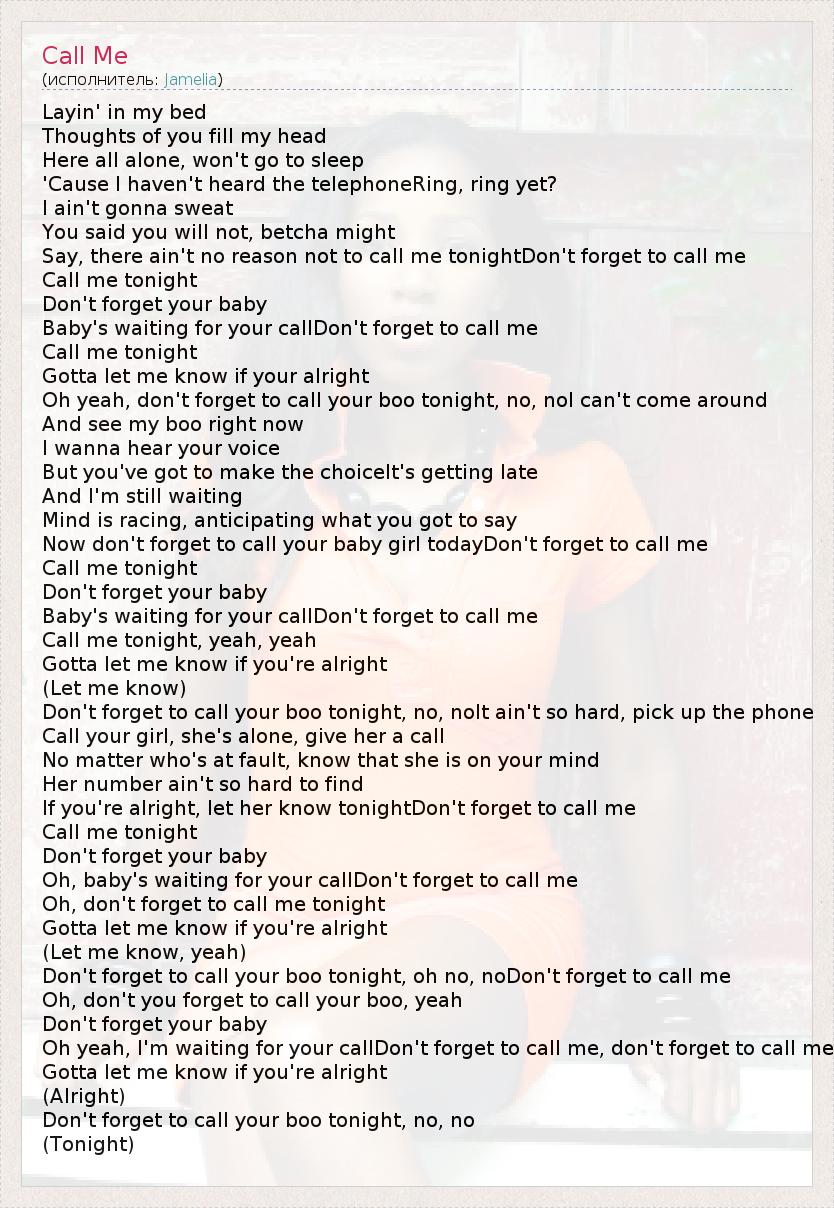 Say, there ain't no reason not to call me tonightDon't forget to call me