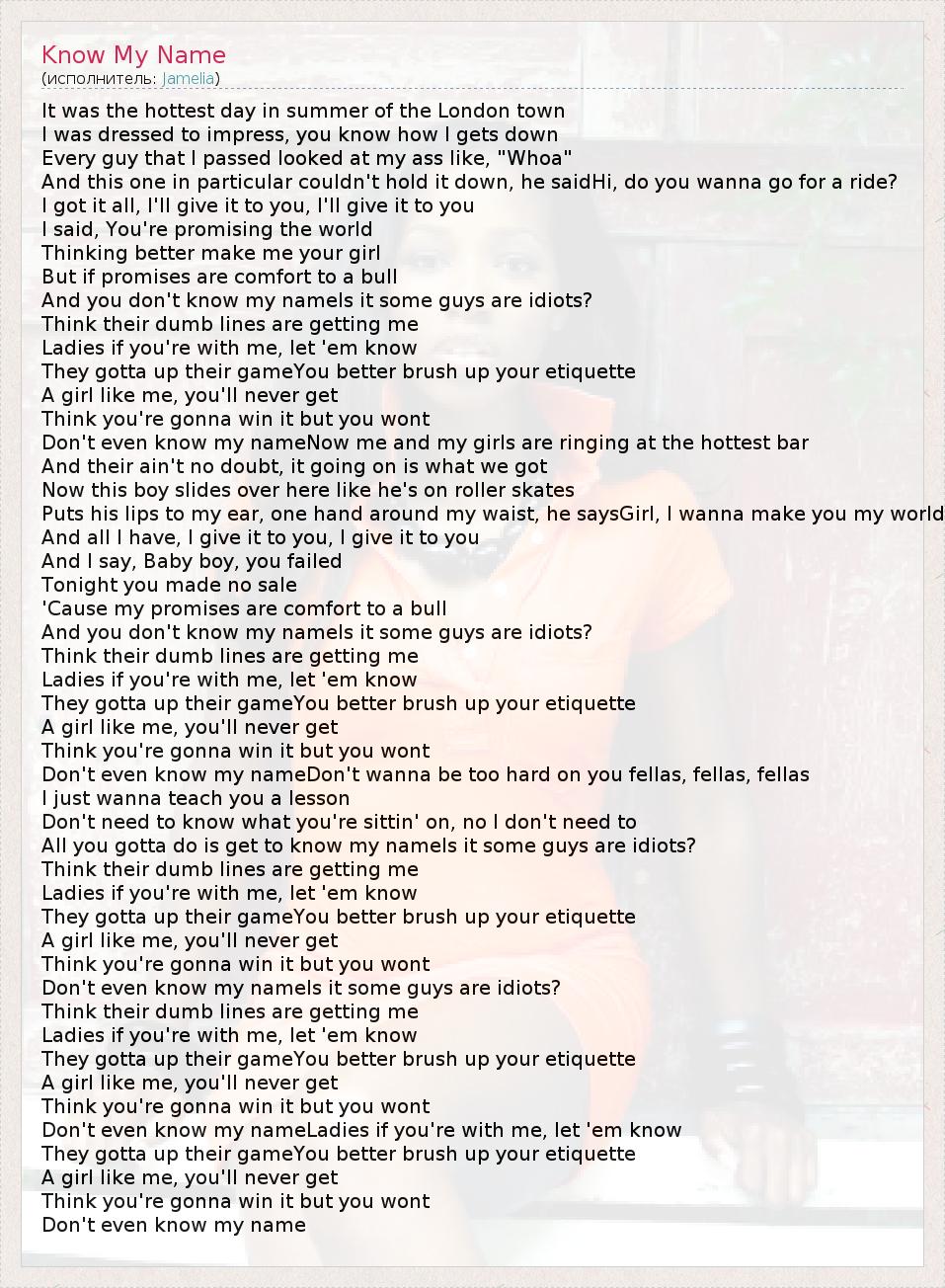 All you gotta do is get to know my nameIs it some guys are idiots?