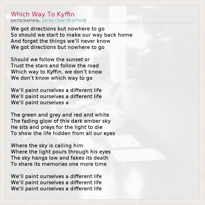 А как ты думаешь, о чем песня "Which Way To Kyffin" ?