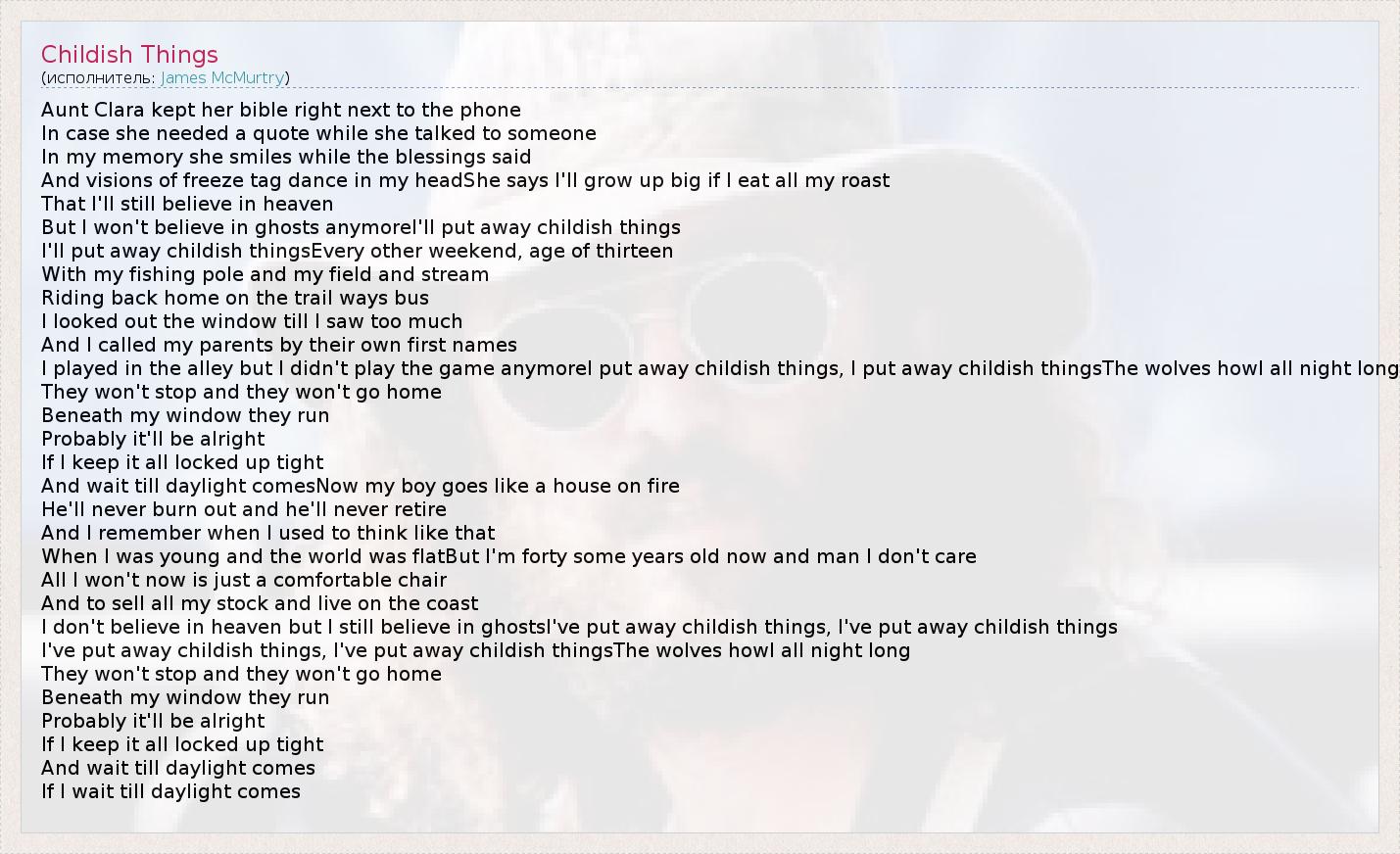 А как ты думаешь, о чем песня "Childish Things" ?