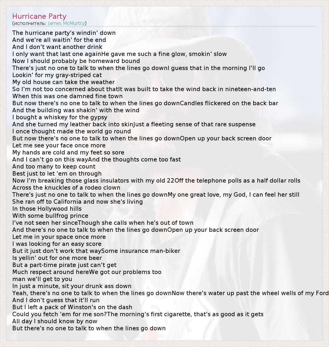 А как ты думаешь, о чем песня "Hurricane Party" ?