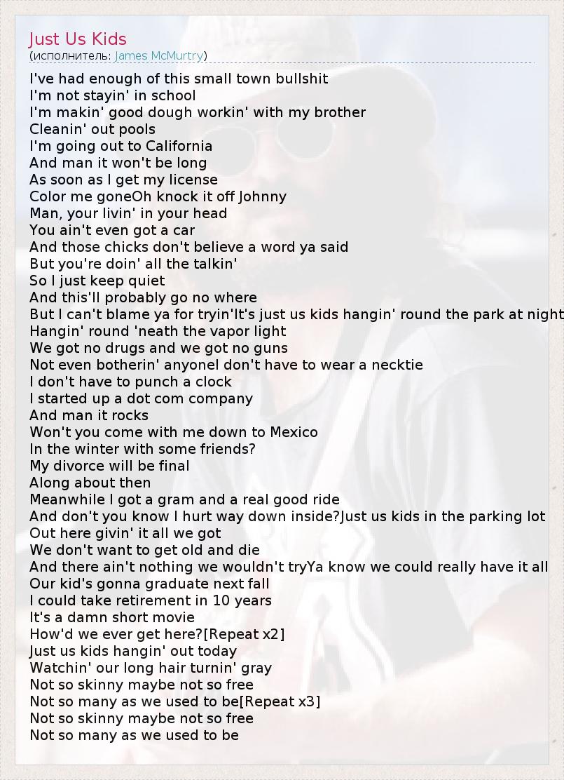 А как ты думаешь, о чем песня "Just Us Kids" ?