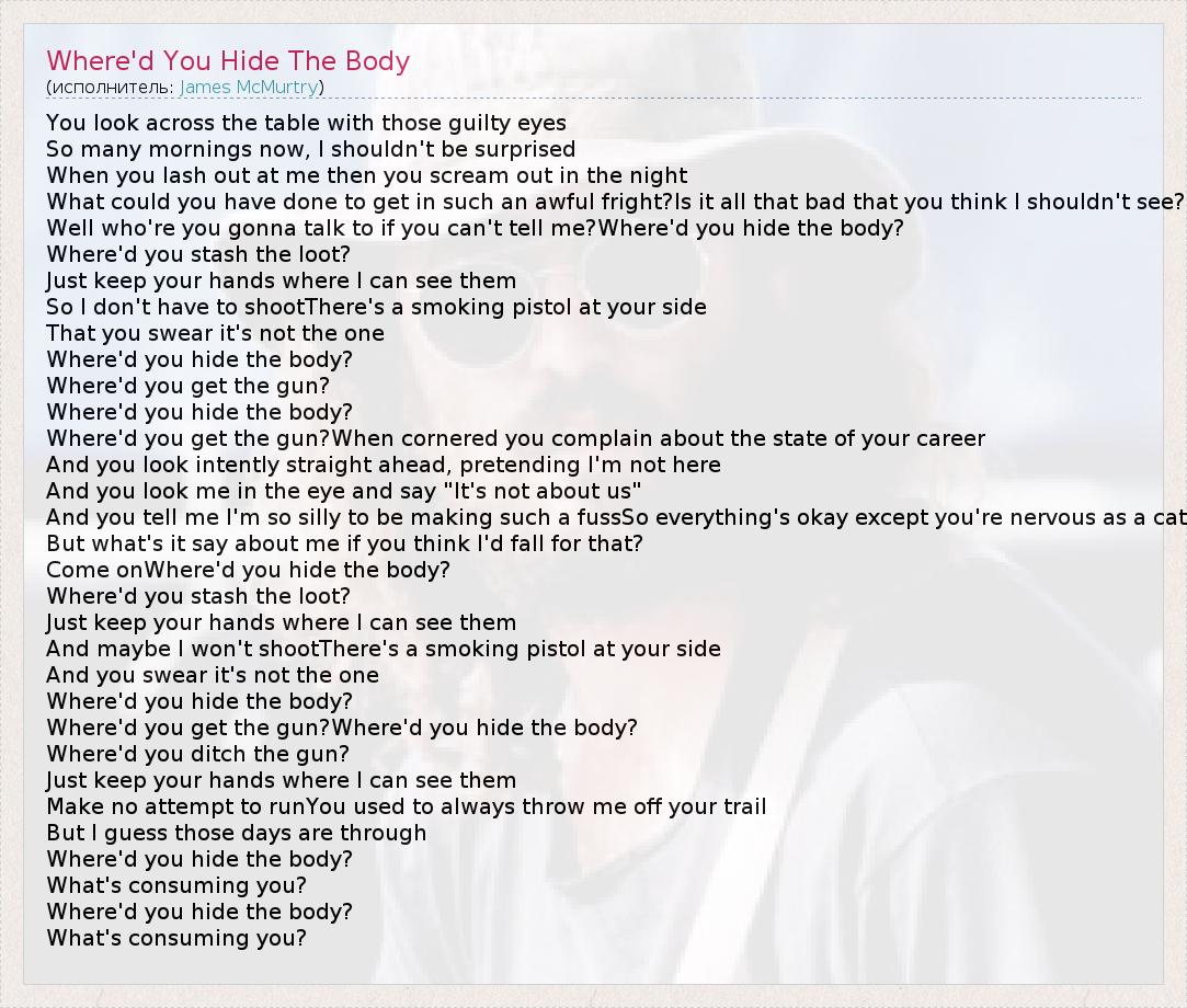 А как ты думаешь, о чем песня "Where'd You Hide The Body" ?