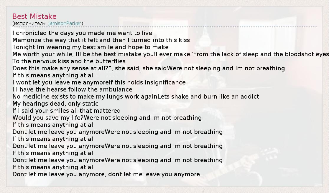 А как ты думаешь, о чем песня "Best Mistake" ?