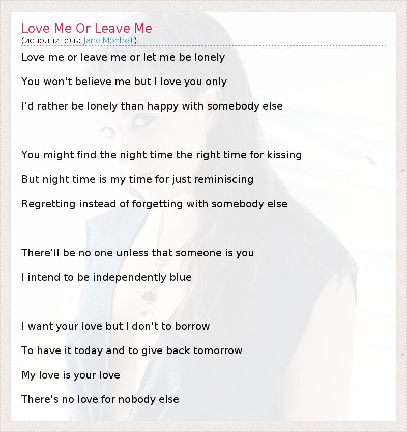 А как ты думаешь, о чем песня "Love Me Or Leave Me" ?