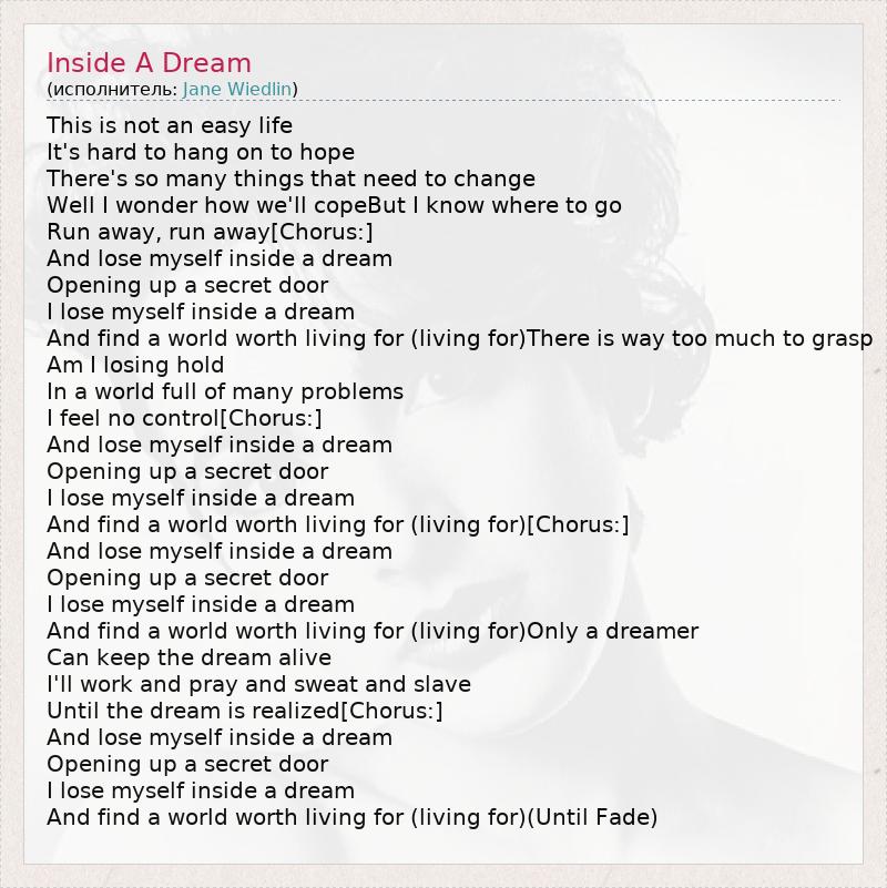 А как ты думаешь, о чем песня "Inside A Dream" ?