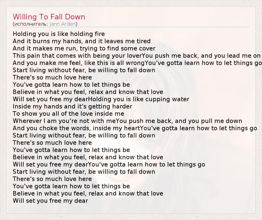 А как ты думаешь, о чем песня "Willing To Fall Down" ?