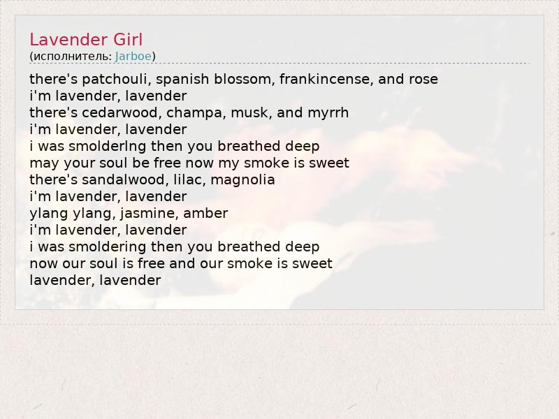 А как ты думаешь, о чем песня "Lavender Girl" ?