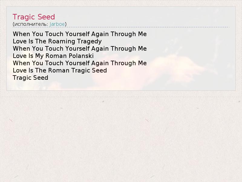 А как ты думаешь, о чем песня "Tragic Seed" ?