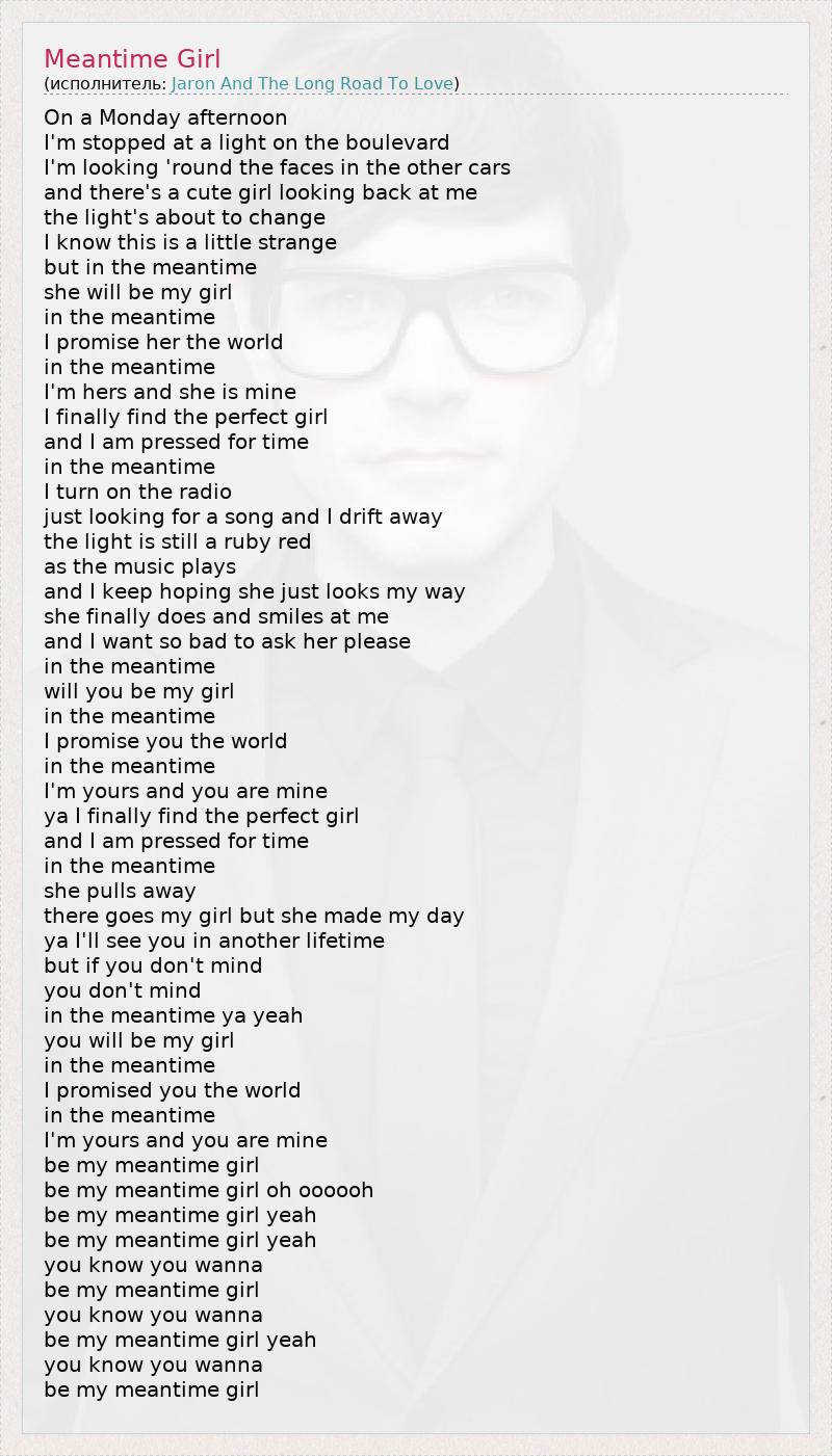 А как ты думаешь, о чем песня "Meantime Girl" ?