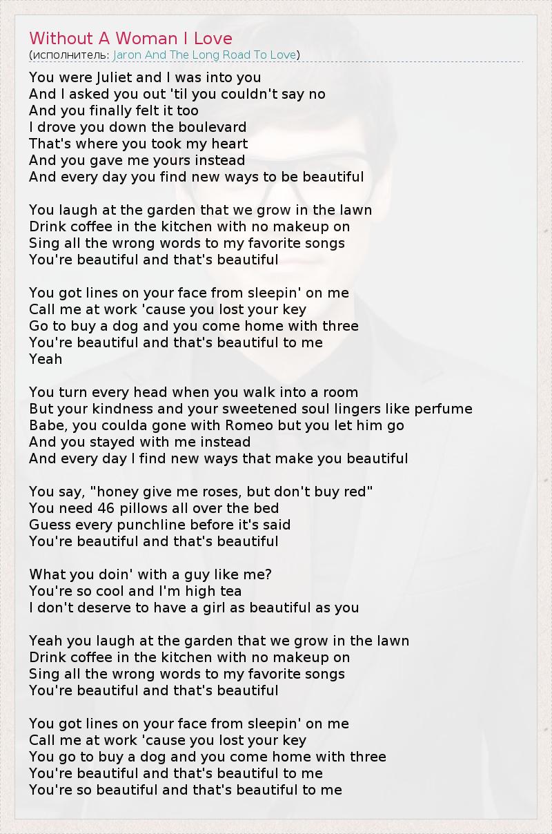 А как ты думаешь, о чем песня "Without A Woman I Love" ?