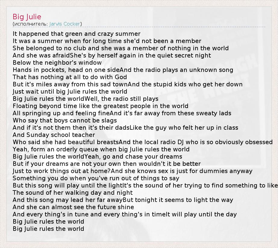 А как ты думаешь, о чем песня "Big Julie" ?