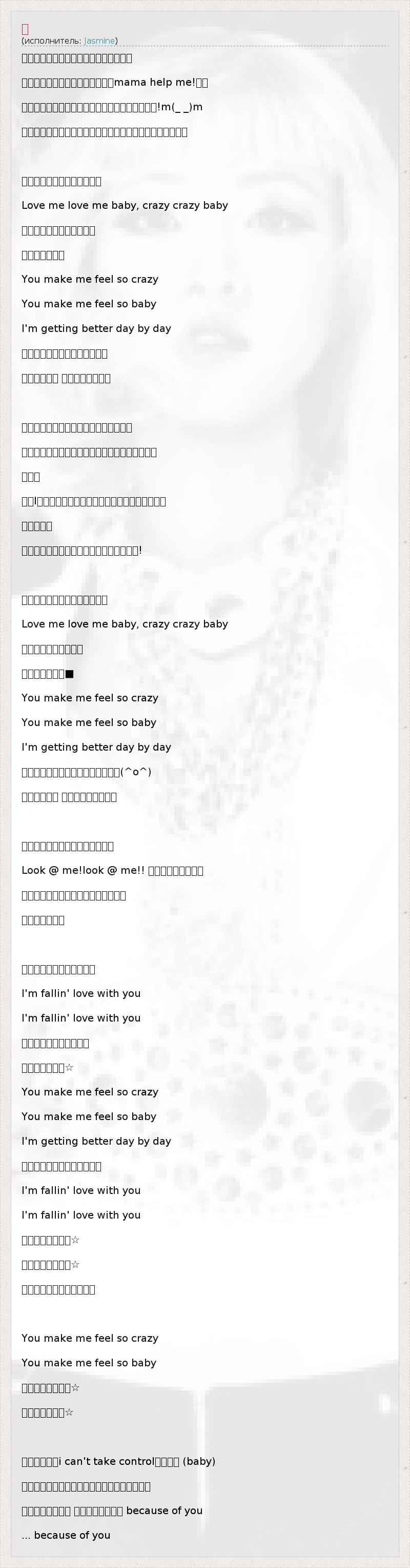 Это интересно:JASMINE родилась 19 мая 1989 года. Японская певица, автор песен и продюсер чье настоящее имя Asumi (あすみ ). Она представлена Sony Music Japan, и DJ для японской радиостанции J-Wave . В июне 2009 года она выпустила свой дебютный сингл "Sad to Say". Jasmine считает что Утада Хикару повлияла на нее и ее стиль.