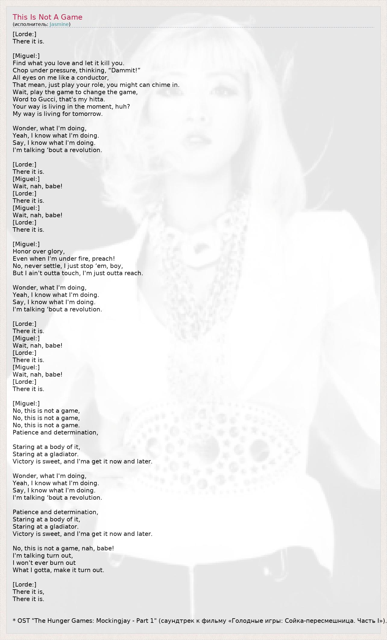 А как ты думаешь, о чем песня "This Is Not A Game" ?