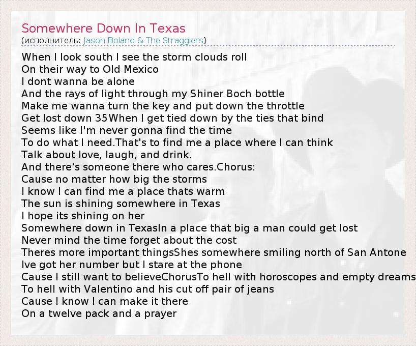А как ты думаешь, о чем песня "Somewhere Down In Texas" ?
