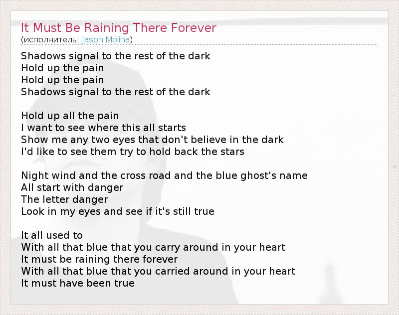 А как ты думаешь, о чем песня "It Must Be Raining There Forever" ?