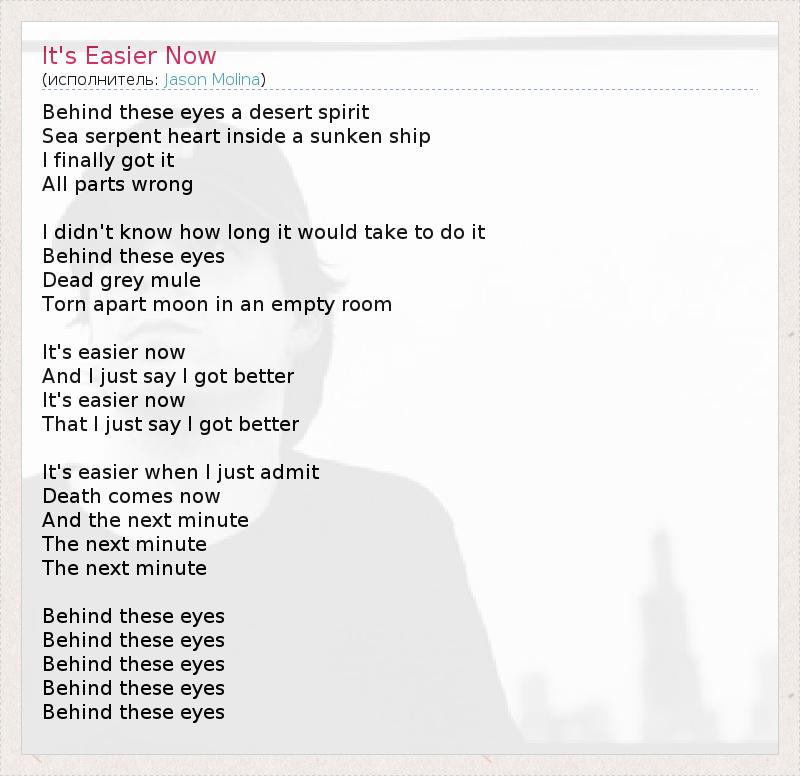 А как ты думаешь, о чем песня "It's Easier Now" ?