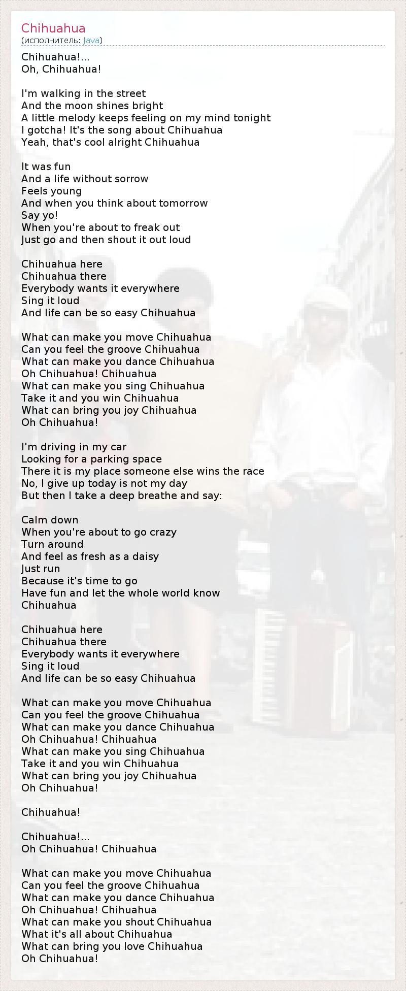 А как ты думаешь, о чем песня "Chihuahua" ?