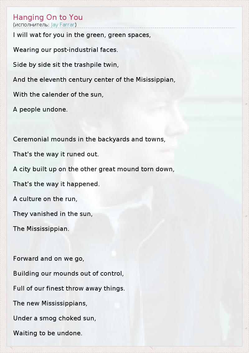 А как ты думаешь, о чем песня "Hanging On to You" ?