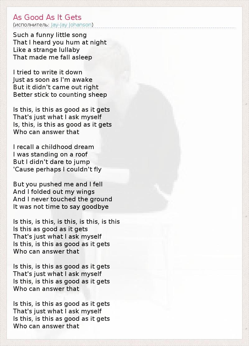 А как ты думаешь, о чем песня "As Good As It Gets" ?