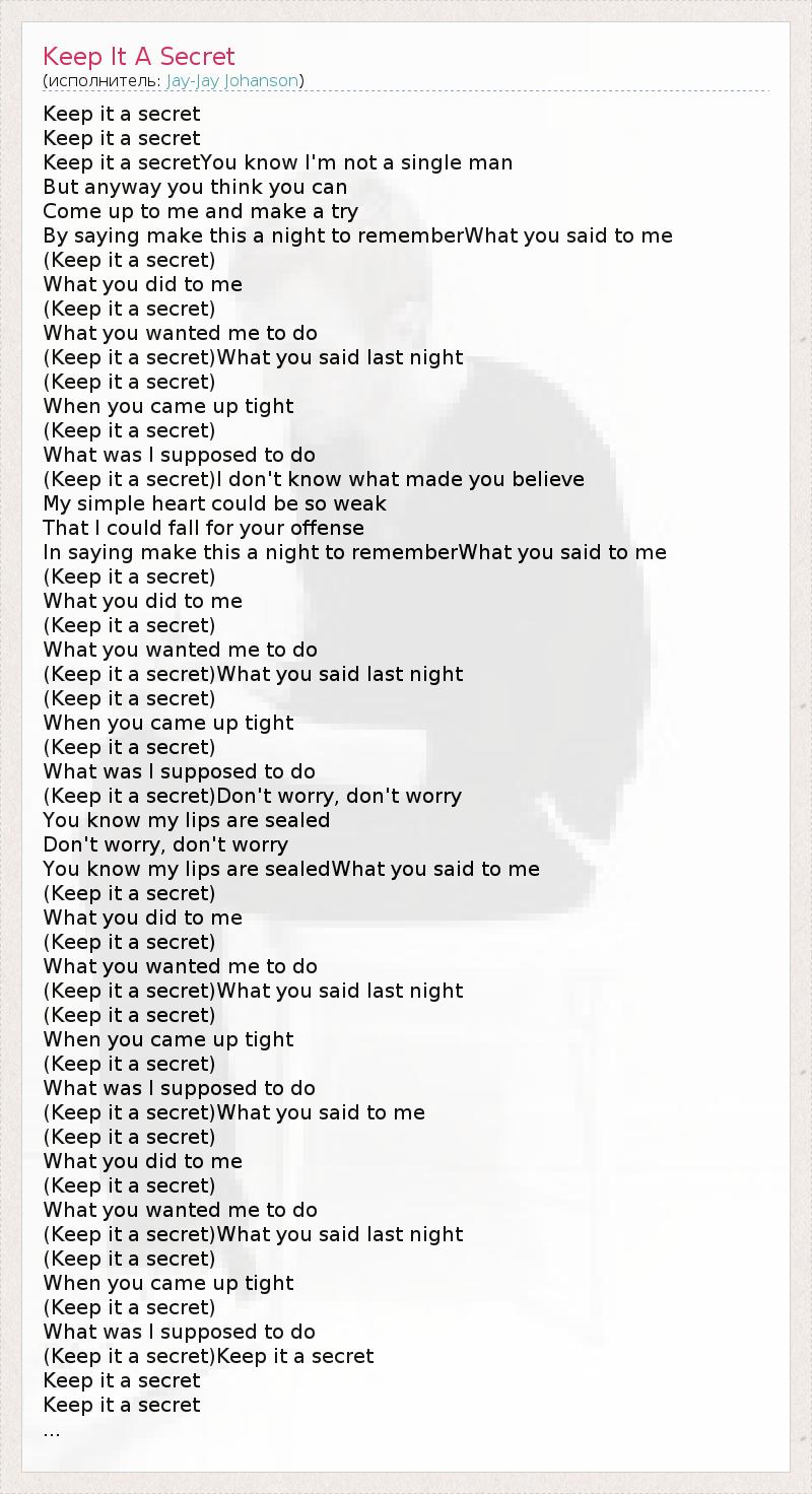 А как ты думаешь, о чем песня "Keep It A Secret" ?