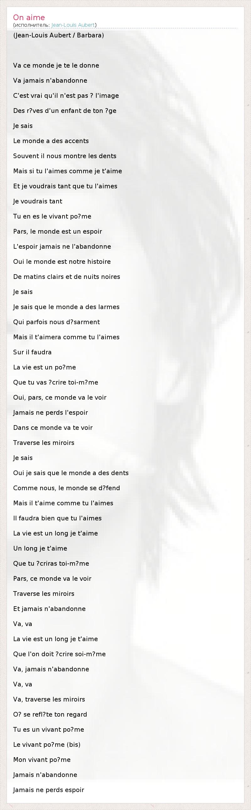 Это интересно:Жан-Луи Обер родился в Нантуа 12 апреля 1955 года в семье высокопоставленного чиновника, обладавшего слишком большими обязанностями и очень незначительным количеством свободного времени, чтобы тратить его на ребенка. Мальчика фактически воспитывали слуги, он рос не слишком дисциплинированным, ученьем и науками интересовался мало, единственным увлечением юного Жан-Луи была музыка.Когда... продолжение