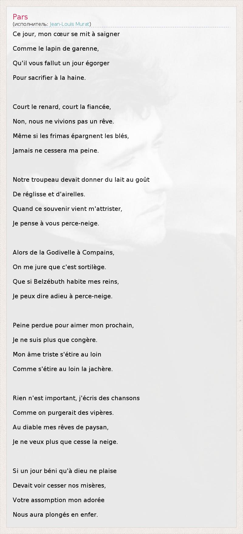 Это интересно:Жан-Луи Бергход Мюра родился в 1952 году в городе Овернь. Детство прошло на территории фермы, которая была практически изолированная от региона Клермон-Феррана. Мюра сохранит очарование крестьянского мира, который позже проявится в его творчестве. На некоторое время Мюра покидает свои родные места и работает в Авории и Лазурном берегу, но затем возвращается в родные края, полный решимости... продолжение