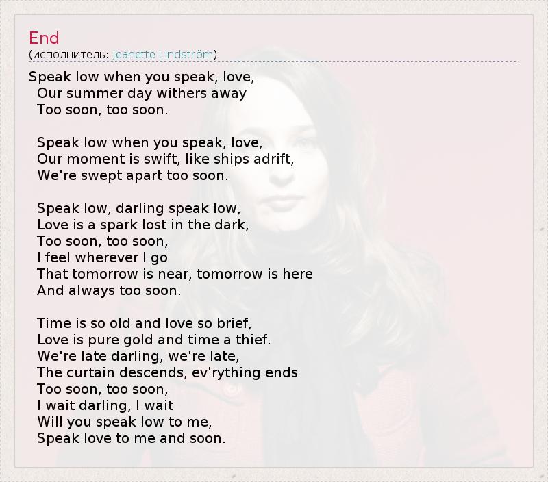 Speak low when you speak, love,
