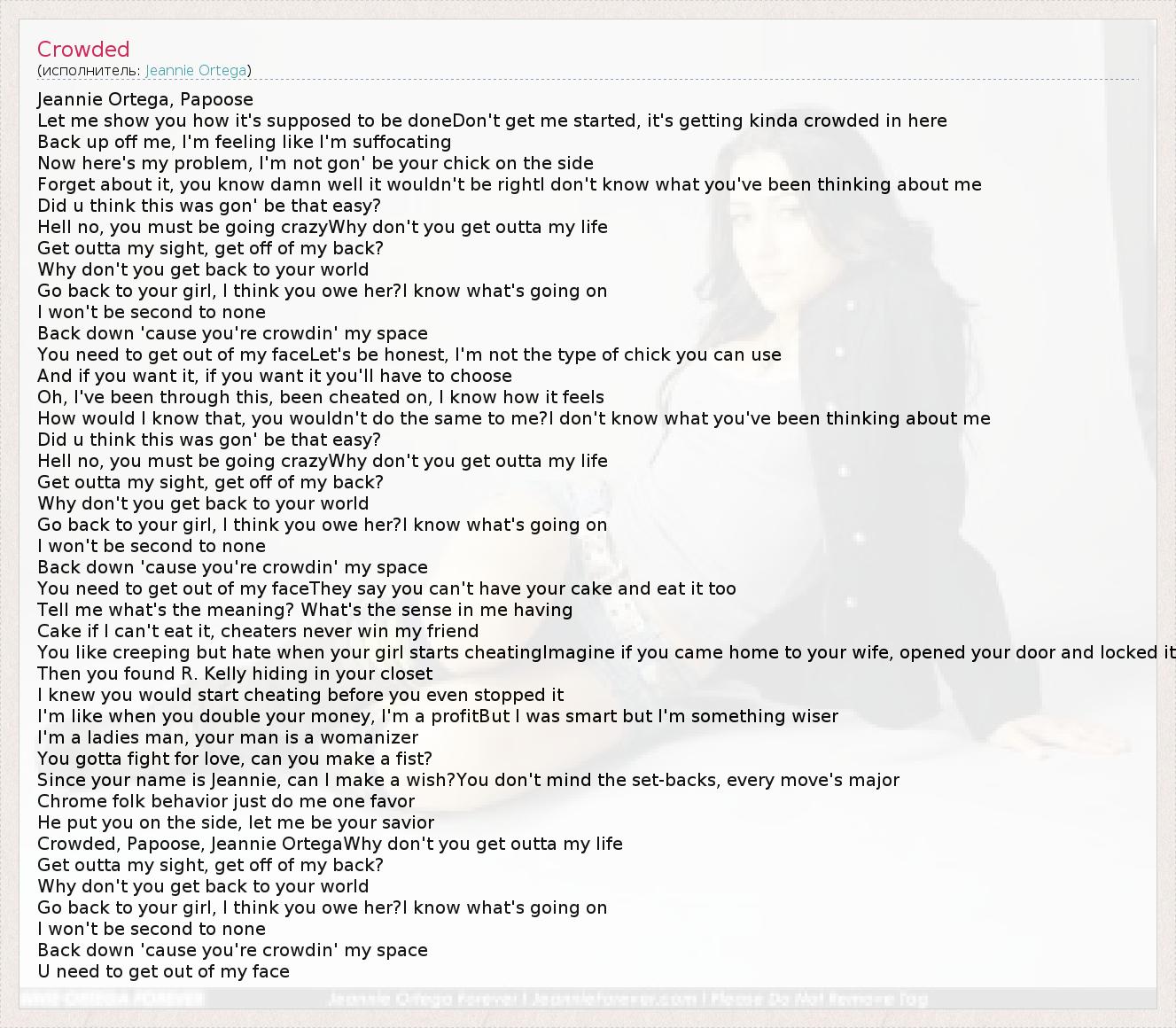 Crowded, Papoose, Jeannie OrtegaWhy don't you get outta my life