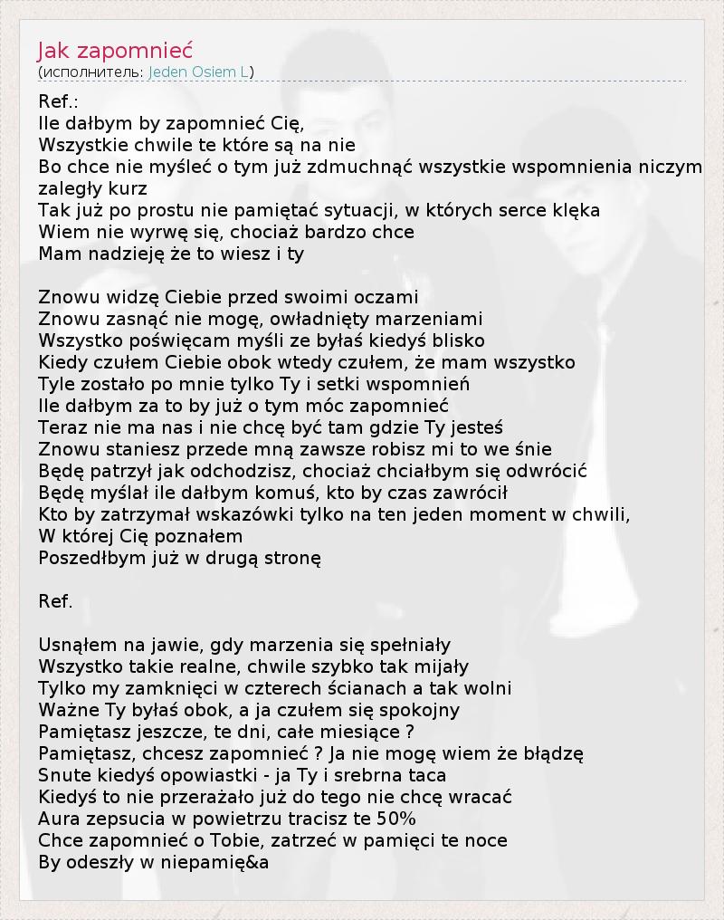 А как ты думаешь, о чем песня "Jak zapomnieć" ?