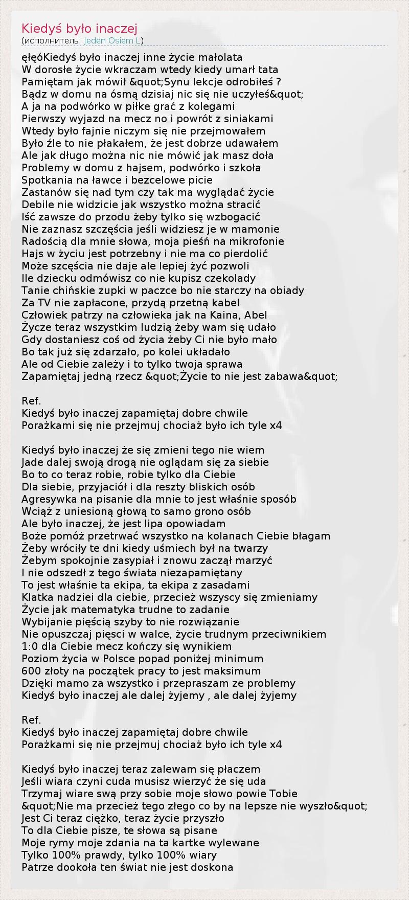 А как ты думаешь, о чем песня "Kiedyś było inaczej" ?