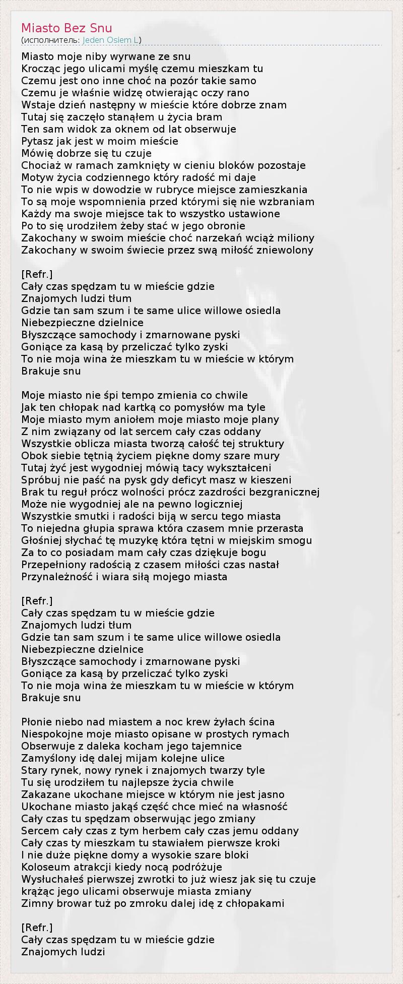 А как ты думаешь, о чем песня "Miasto Bez Snu" ?