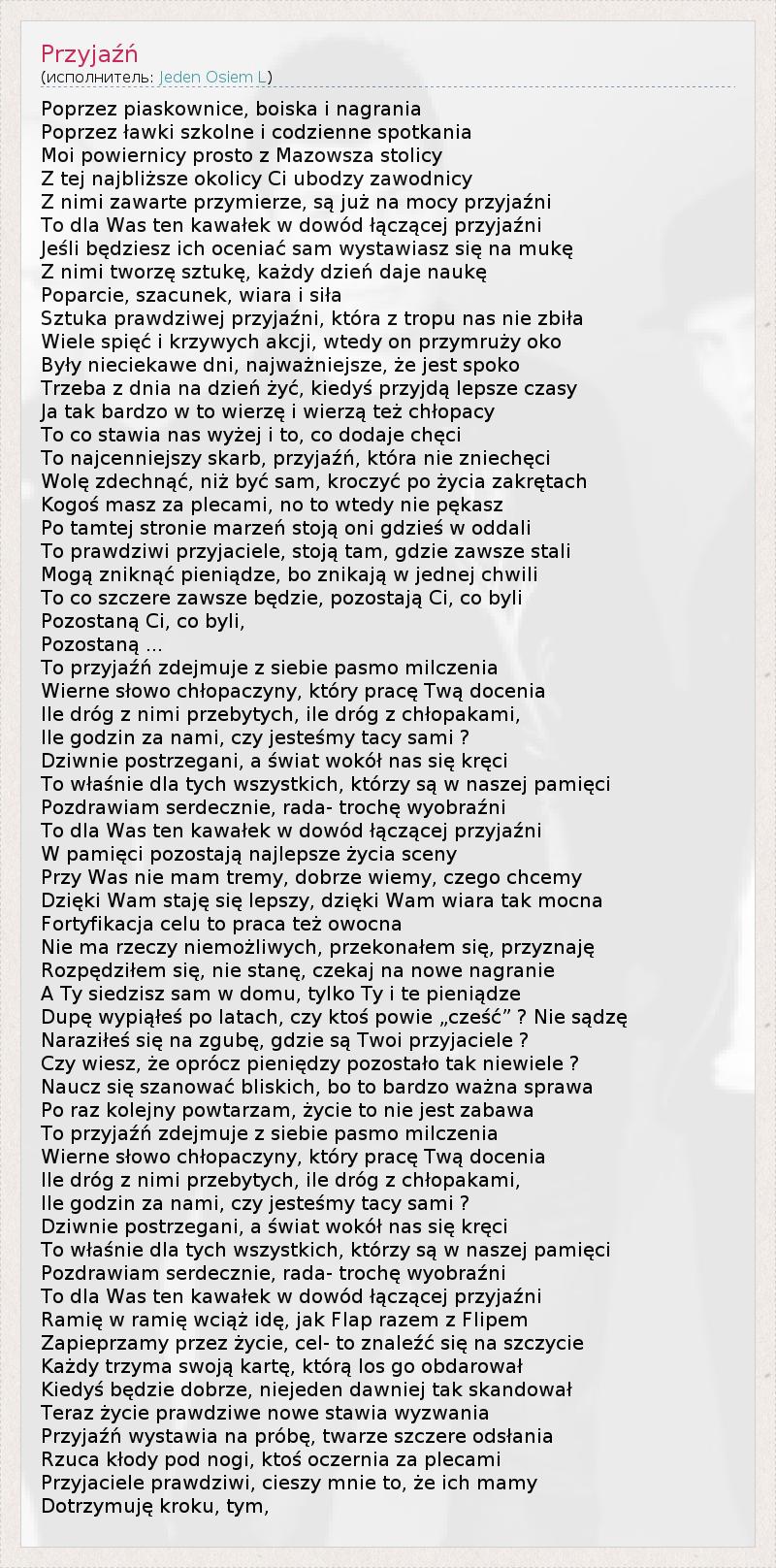 А как ты думаешь, о чем песня "Przyjaźń" ?