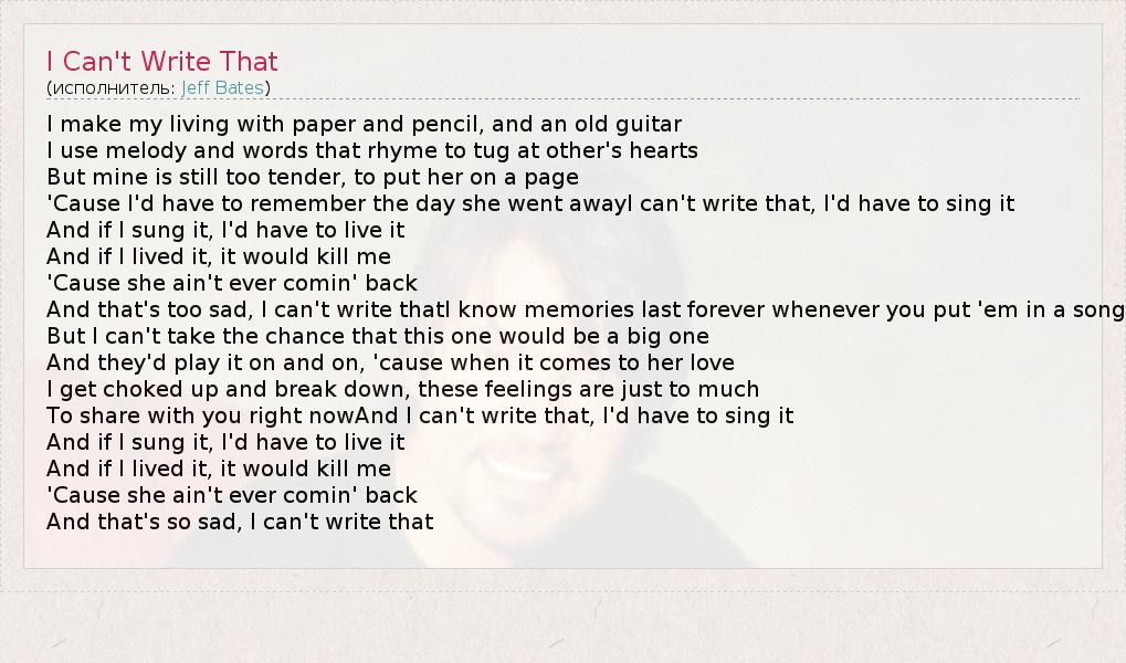 А как ты думаешь, о чем песня "I Can't Write That" ?