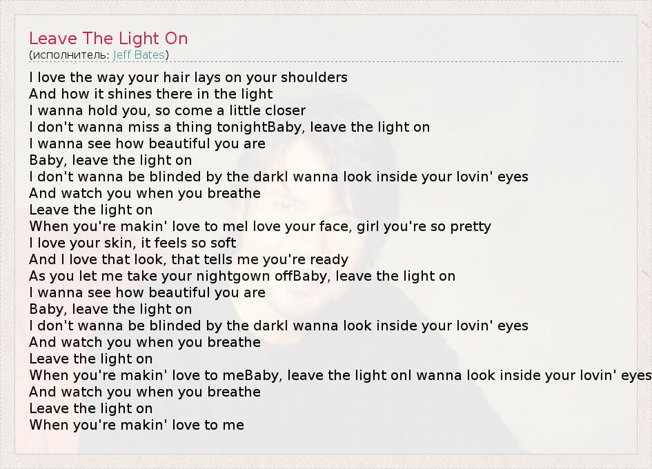 А как ты думаешь, о чем песня "Leave The Light On" ?