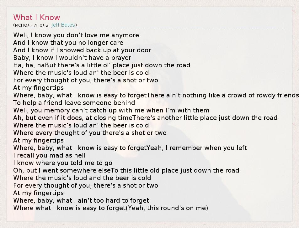 Where, baby, what I know is easy to forgetYeah, I remember when you left