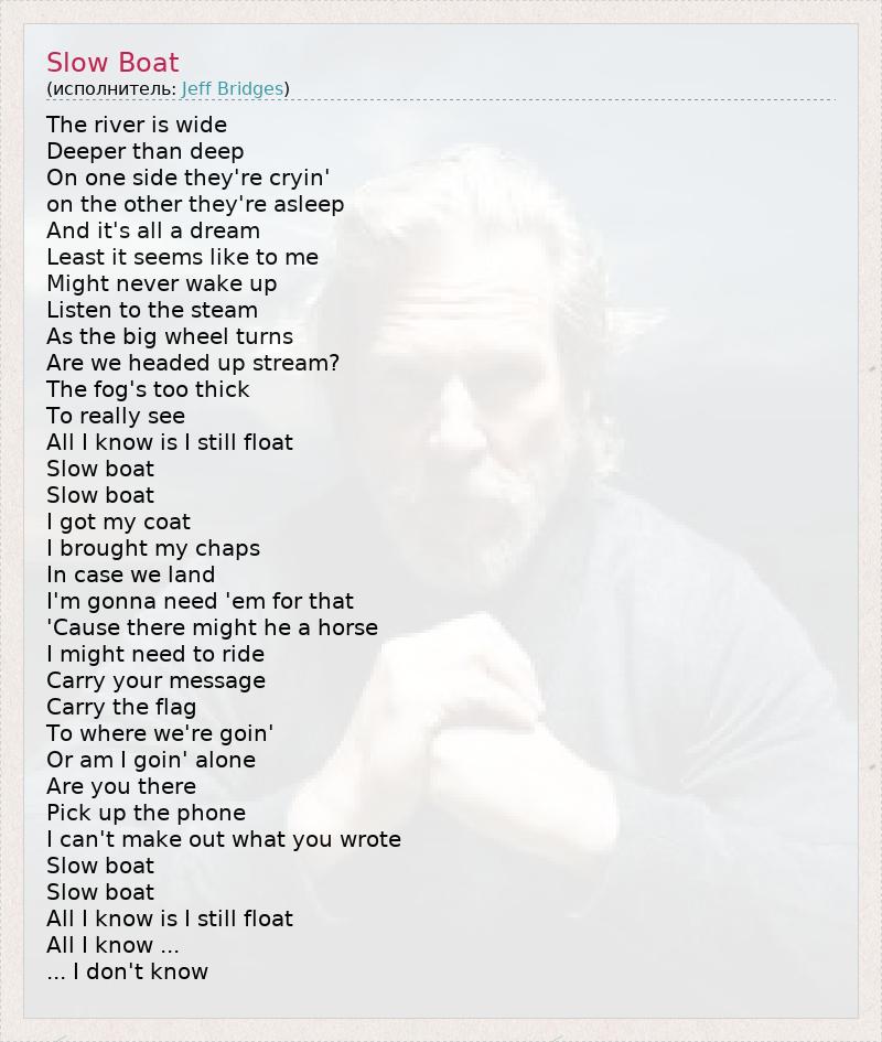 А как ты думаешь, о чем песня "Slow Boat" ?