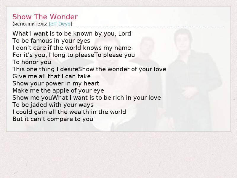 А как ты думаешь, о чем песня "Show The Wonder" ?