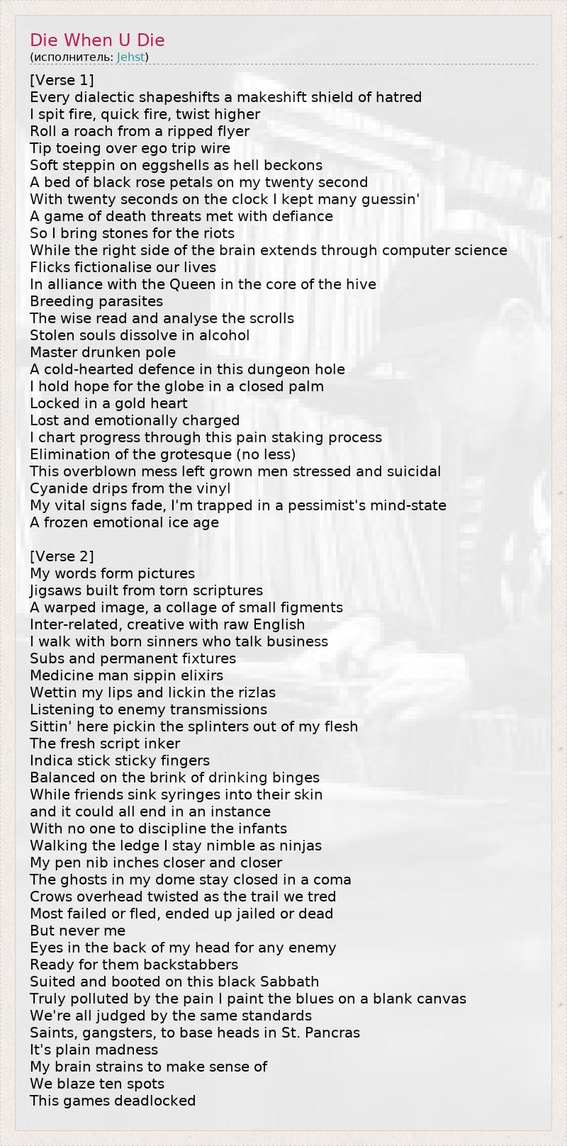 А как ты думаешь, о чем песня "Die When U Die" ?