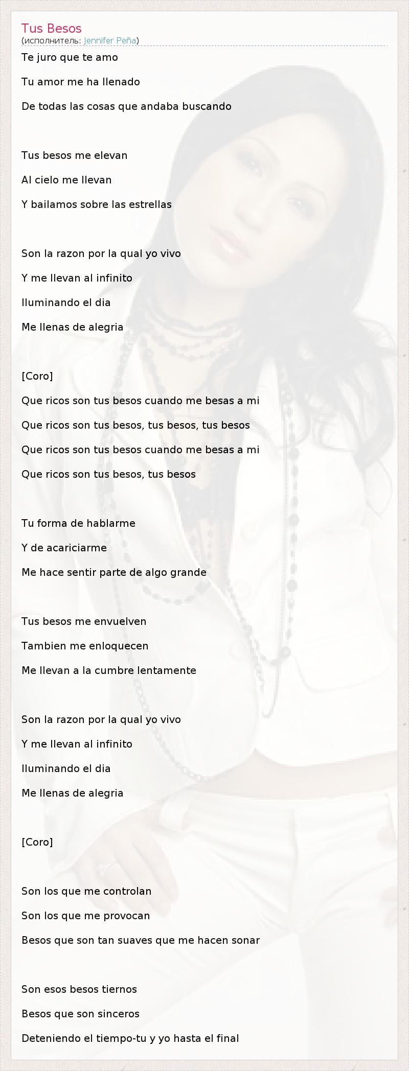 А как ты думаешь, о чем песня "Tus Besos" ?