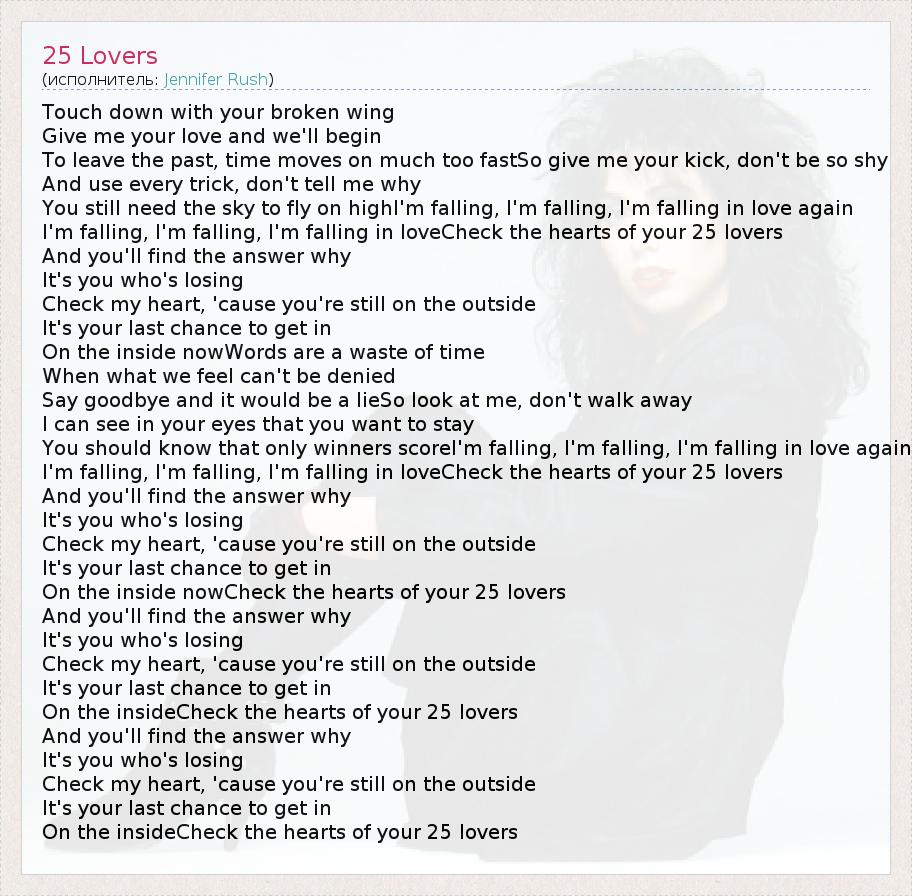 I'm falling, I'm falling, I'm falling in loveCheck the hearts of your 25 lovers