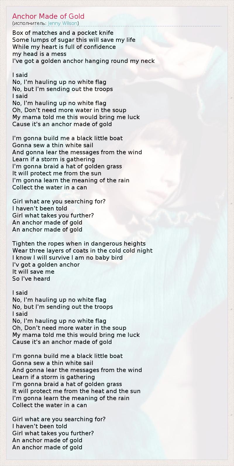 А как ты думаешь, о чем песня "Anchor Made of Gold" ?