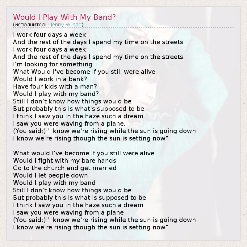 А как ты думаешь, о чем песня "Would I Play With My Band?" ?